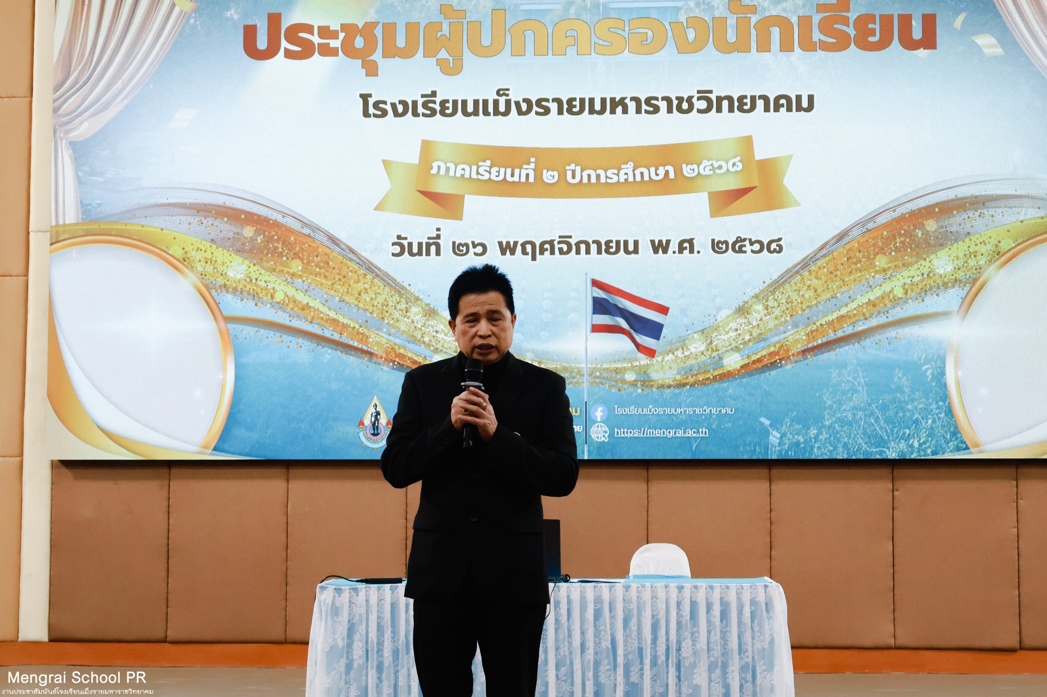 วันพุธที่ 26 พฤศจิกายน 2568 โรงเรียนเม็งรายมหาราชวิทยาคมจัดประชุมผู้ปกครองนักเรียน เพื่อชี้แจงแนวทางการดำเนินงานของโรงเรียน และสร้างความร่วมมือระหว่างบ้านและโรงเรียนในการพัฒนาผู้เรียน โดยได้รับเกียรติจาก นายเสงี่ยม แสนพิช นายกสมาคมผู้ปกครองและครูโรงเรียนเม็งรายมหาราชวิทยาคม ให้เกียรติเป็นประธานในพิธี บรรยากาศการประชุมเต็มไปด้วยความร่วมมือ ความห่วงใย และความตั้งใจร่วมกันในการสนับสนุนการเรียนรู้ของนักเรียนให้ก้าวหน้าและมีคุณภาพมากยิ่งขึ้น
