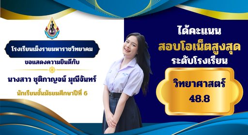 ได้คะแนนโอเน็ตสูงสุดระดับโรงเรียน ได้แก่